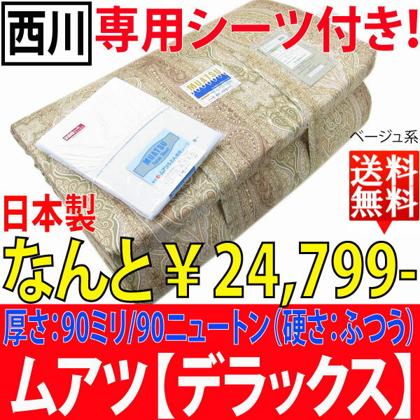 品名 点で支える西川のムアツふとんデラックスタイプ サイズ 9×91×200cm(S) 組成 ふとんがわ:綿100%詰めもの:ウレタンフォーム 内容 硬さ:90ニュートン厚さ:90mm長さ:200cm・・・・・・・・・・