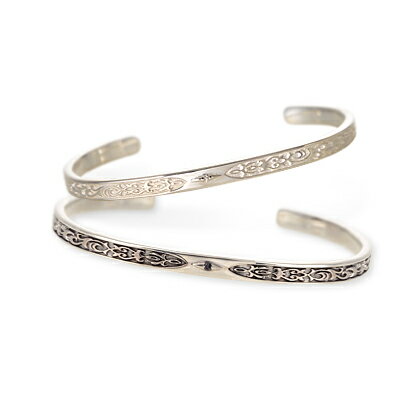 アラベスクのような模様の入った、細身のバングル。小さいブラックキュービックジルコニアがとまっていて、高級感を際立たせます。カジュアルなコーディネートにあいそう。ペアで白黒お揃いをつけてみて。SAINT・・・・・・・・・・