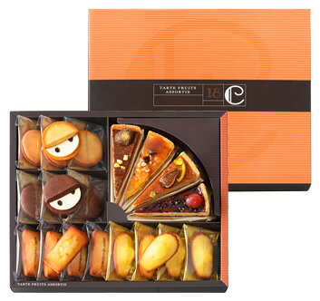 内容量【タルト・フリュイ 4種 各1コ】タルト・フリュイ<マロン・ショコラ、ポム・キャラメル、フィグ・オランジュ、フリュイ・ルージュ>各1コ、フィナンシェ 4コ、マドレーヌ 4コ、クレーム・ビスキュイ・・・・・・・・・・
